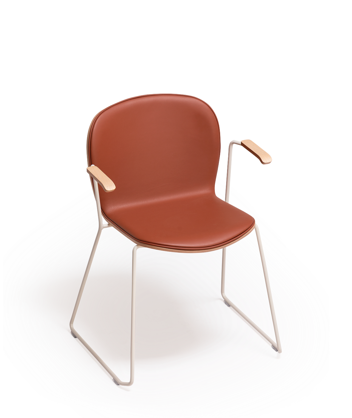 Silla monocarcasa en contrachapado de fresno o haya, acabados en madera natural, tintado o lacado a poro abierto. Opcional tapizado interior de asiento o tapizado completo.