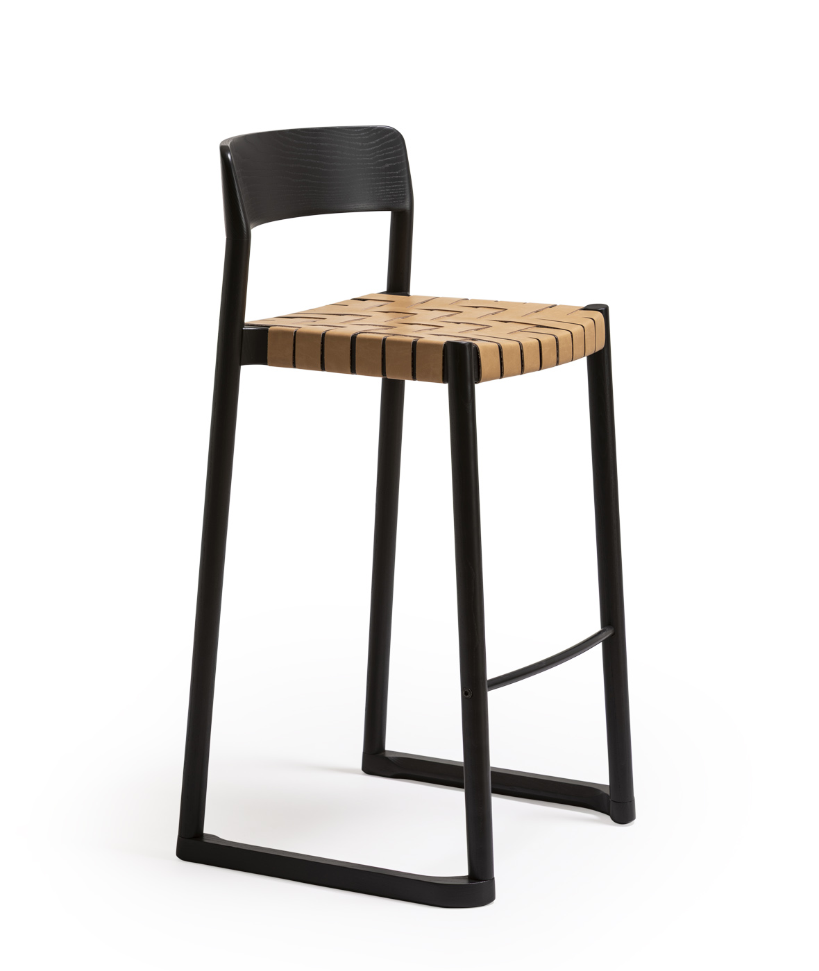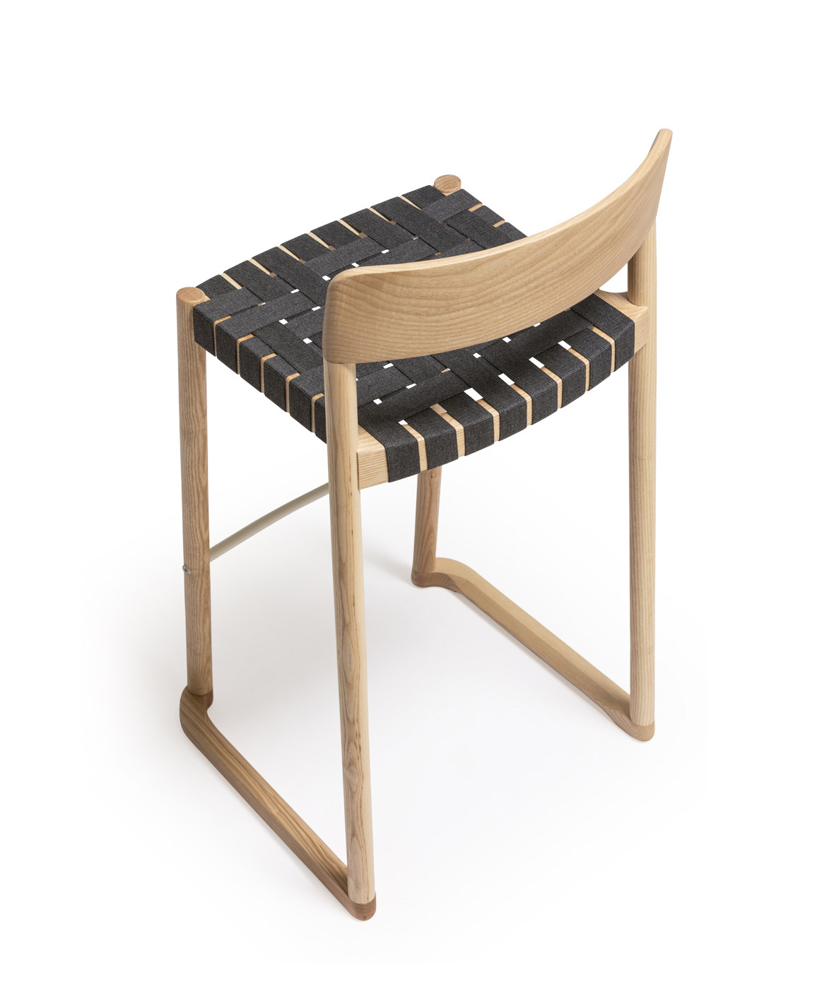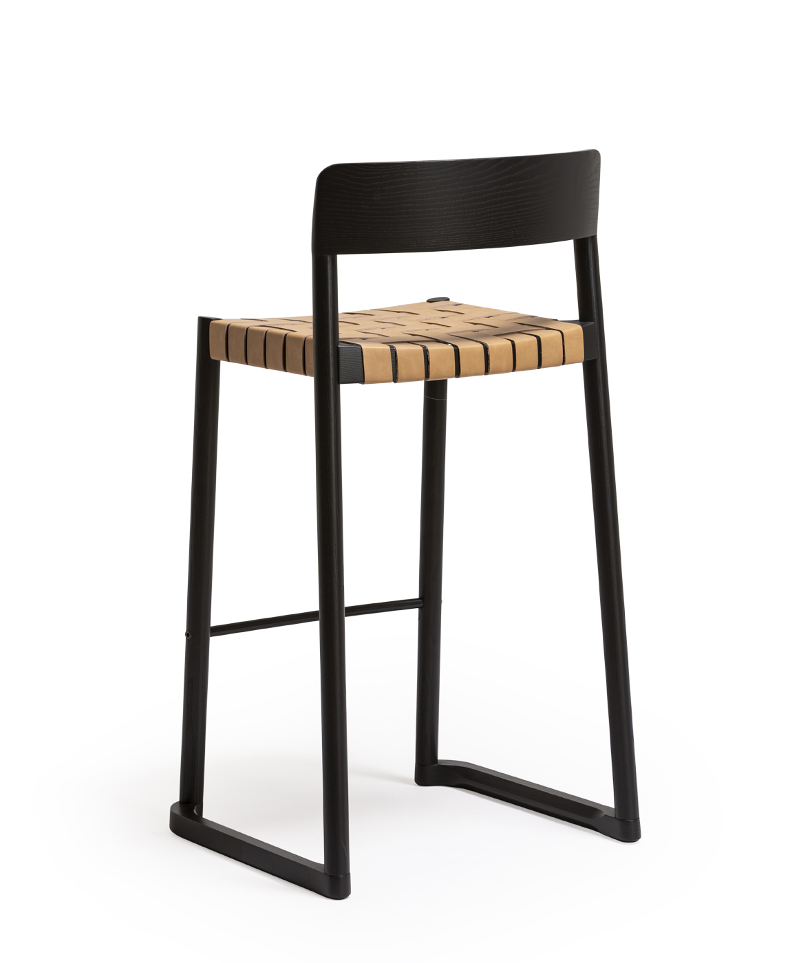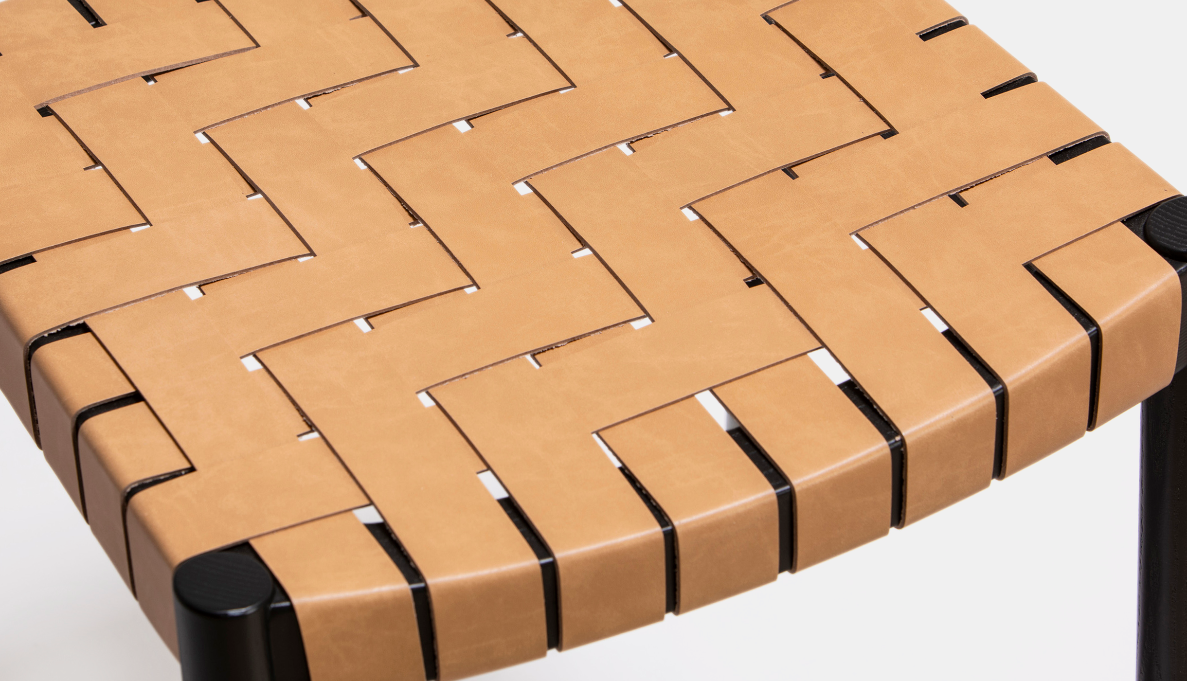 Taburete Nela, asiento en cinta de cuero reciclado