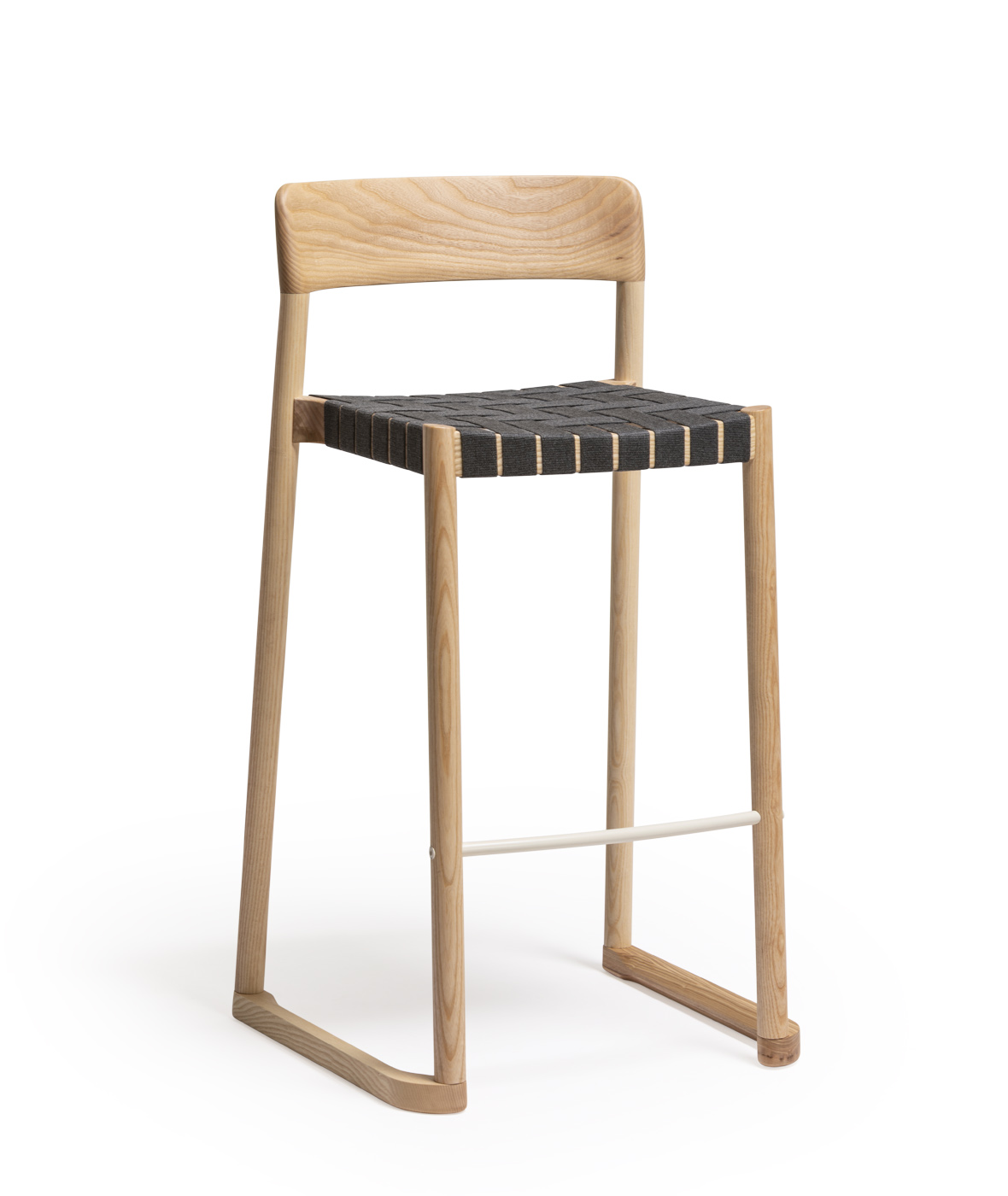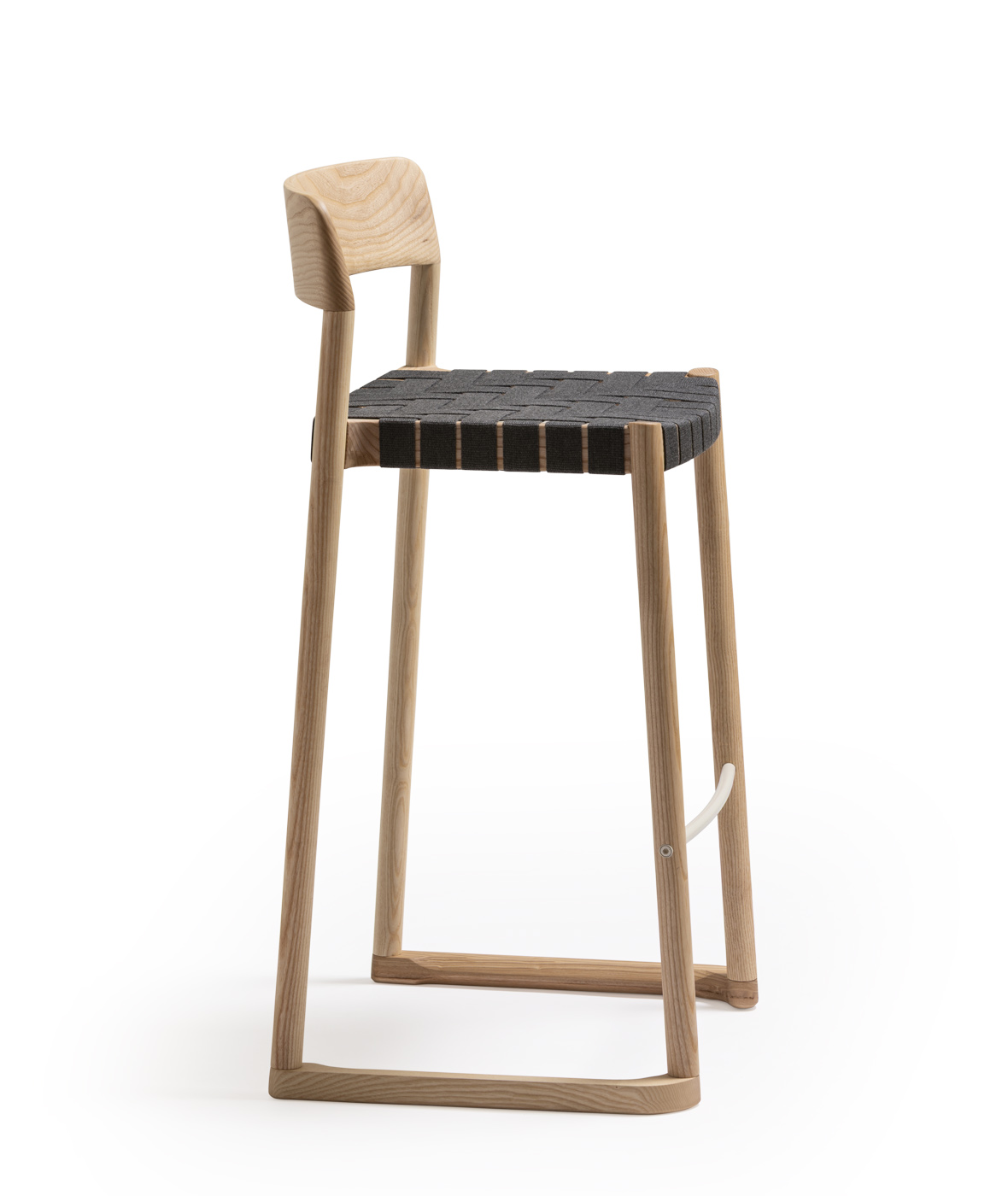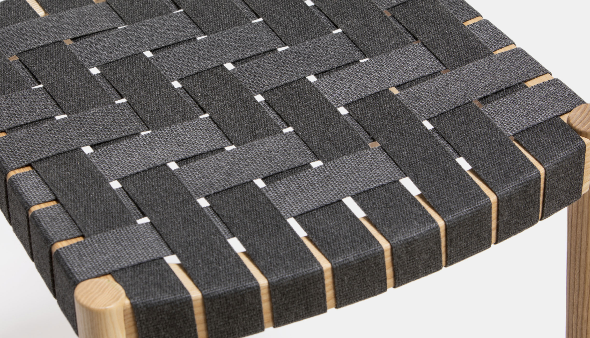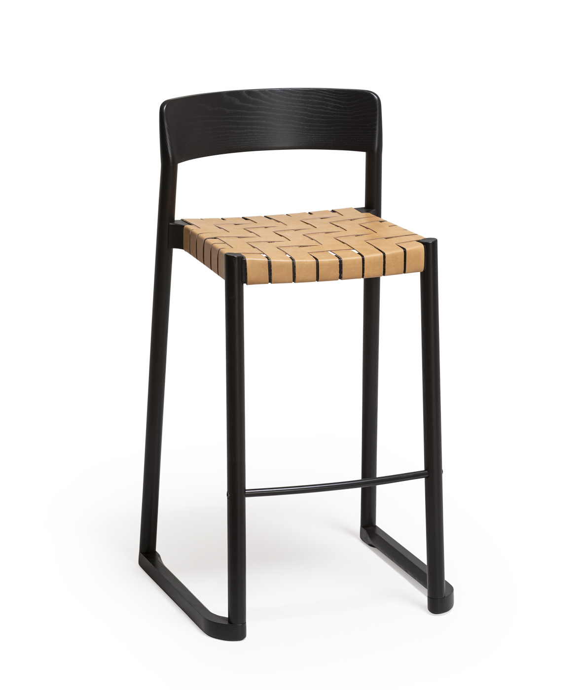 Taburete Nela, asiento en cinta de cuero reciclado