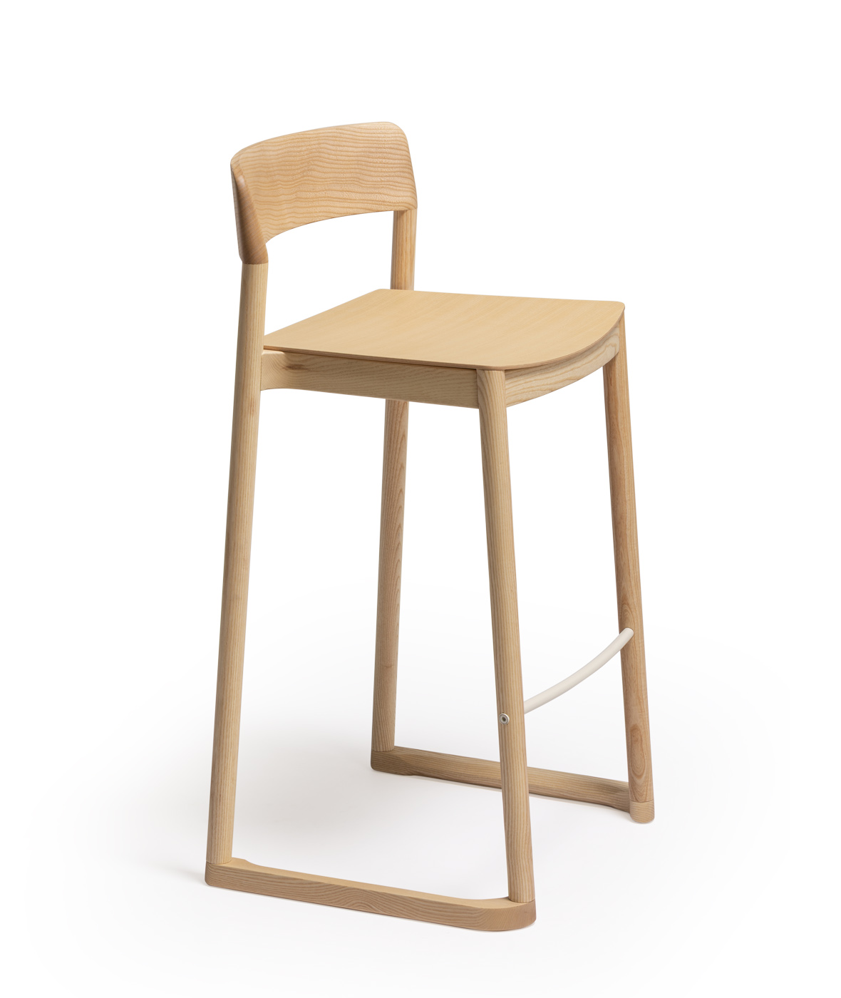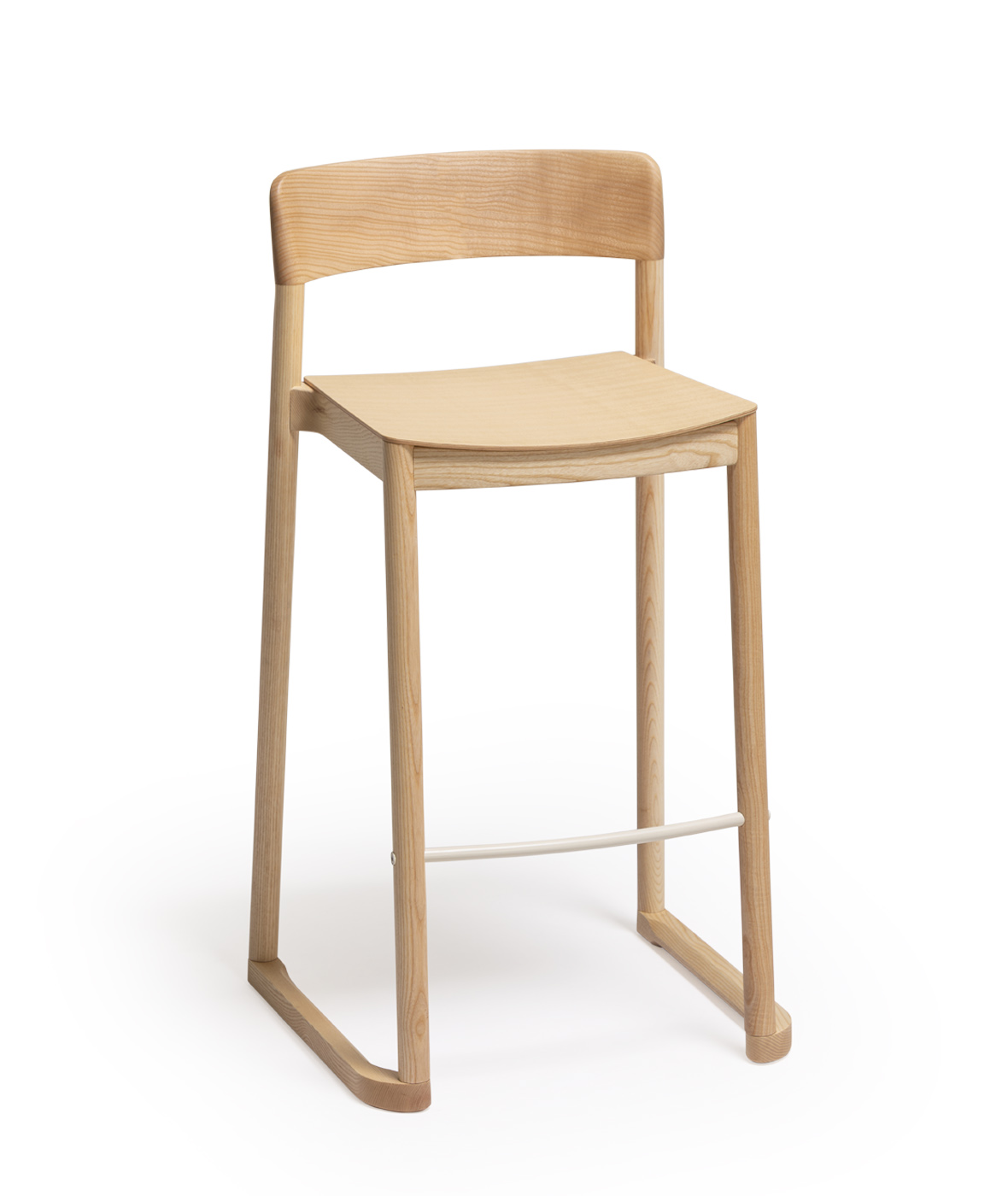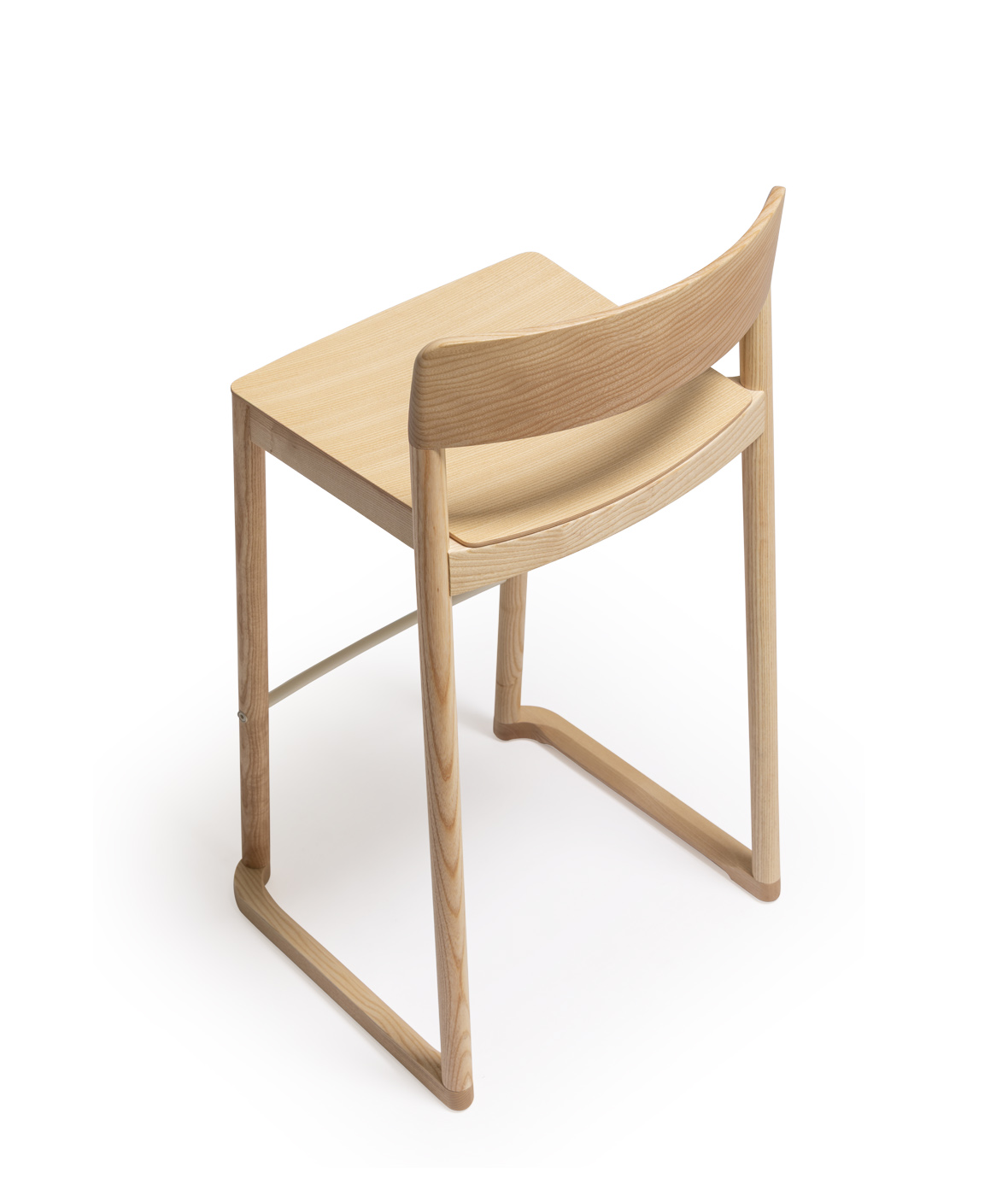Silla apilable con estructura de madera de fresno macizo, acabado en color natural o lacado a poro abierto.